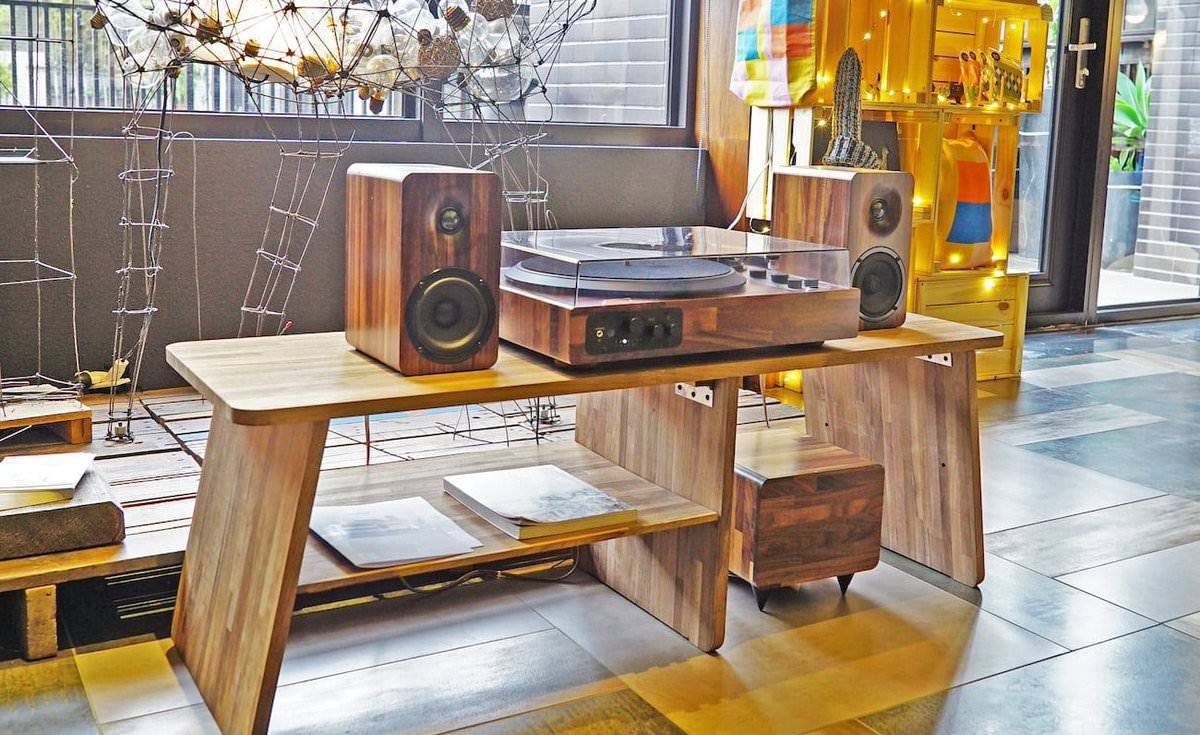 Современных аудиофилов уже мало ничем не удивить: есть и hi-fi end вертушки, и бюджетные линейки, и лимитированные коллекции, посвящённые другим исполнителям. Чем привлечь внимание коллекционеров и любителей музыки? Тайваньская компания Minfort решила эту проблему с помощью незаурядного дизайна. Виниловый проигрыватель ТТ8 выполнен в ретро-стиле с корпусом целиком из деревянных брусков на выбор: орех, тик и дуб. Выглядит так, будто кто-то перенёс его в наше время из середины 20-го века. При этом ТТ8 оборудован высокотехнологичной начинкой: приёмники Bluetooth и Wi-Fi, поддерживающий AirPlay, цифро-аналогый преобразователь CS4398, и операционные усилители JRC5532. Мотор рассчитан на две скорости, тонарм оснащён картриджем Audio-Technica. В комплект входят колонки и сабвуфер из того же материала. В стандартном наборе колонки-полочники, в делюксовой версии – напольные.